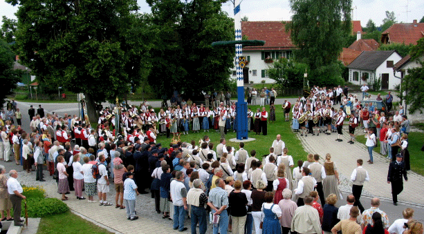 Anschließend kamen fast zeitgleich die Blaskapellen aus Windach und Geretshausen zum Maibaum |
